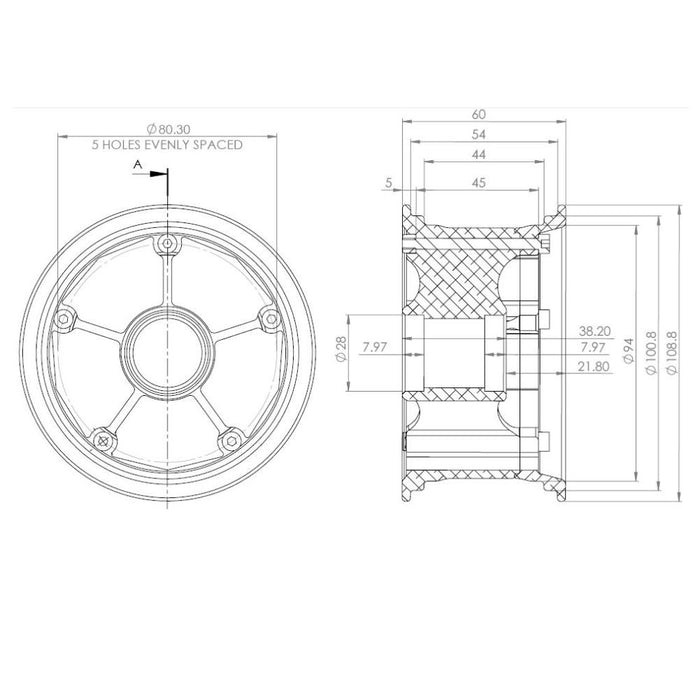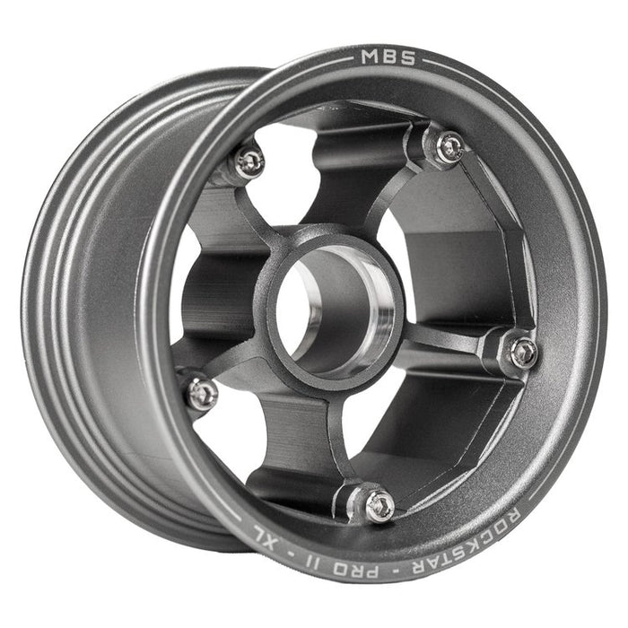 MBS Rockstar Pro II XL aluminum hubs are the strongest and truest hubs MBS has ever produced and the first MBS aluminum hub compatible with both 8" and 9" tires (and some 10" tires). This XL version features a 60mm rim width, MBS's widest ever. The increased contact patch will have you floating over loose terrain or gripping asphalt like never before. Meanwhile their unique faceted internal wall design works seamlessly with MBS balancing weights for an easy and durable balance solution which is especially helpful for larger / heavier tires. Precision machined from 6061-T6 aluminum with a matte anodized finish and laser engraved rim detailing. They look every bit as good as they perform.