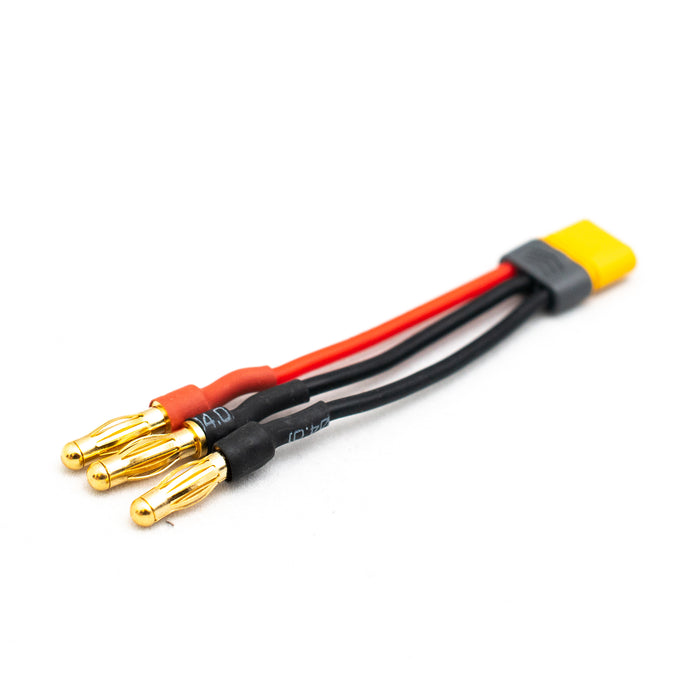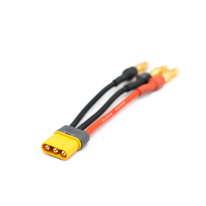 Male MR30 to Male 4mm Bullet connector adapter. Used to adapt Direct Drive connections to regular ESC connections.