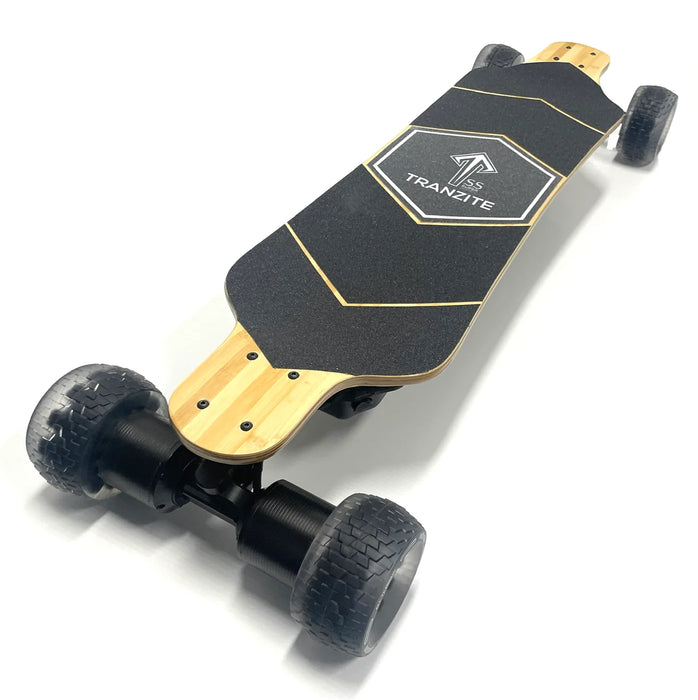 - Softer ride compared to hub motors, as all 4 complete wheels are used, offering better shock absorption (vs traditional hub motors that use a thinner lawyer of urethane, therefore more vibration on bad roads)